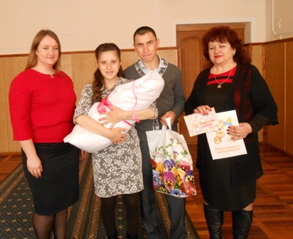 Право вручить первый государственный документ – свидетельство о рождении предоставлено депутату Первомайского сельского поселения Дудченко Лидии Александровне.